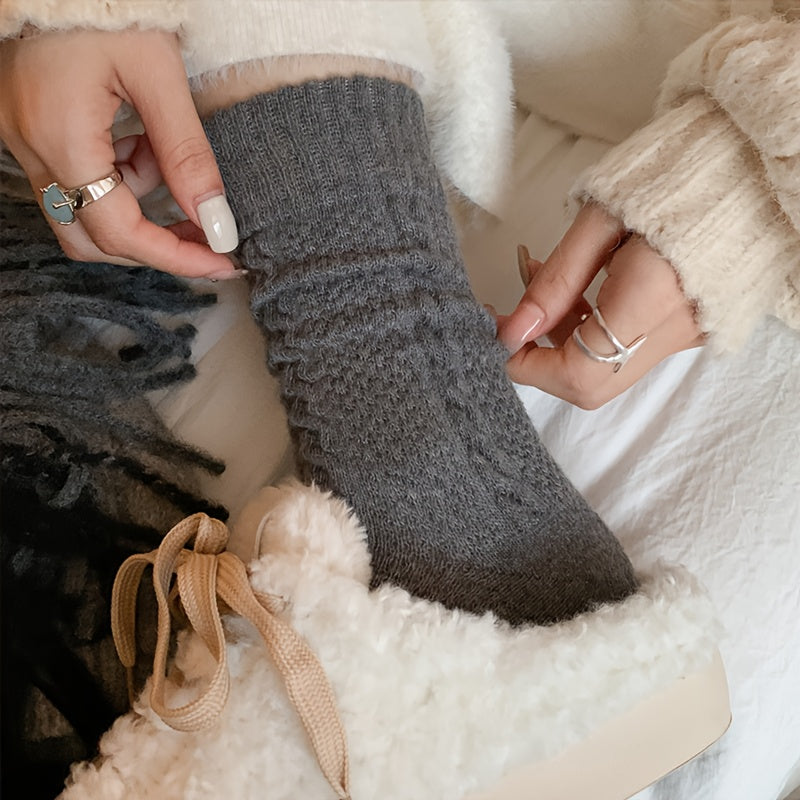 Med sina tidlösa, neutrala färger (svart, vit, grå och beige) passar dessa strumpor enkelt till varje outfit. Perfekta för daglig användning, att bära hemma eller som ett extra lager under kalla utomhusaktiviteter.