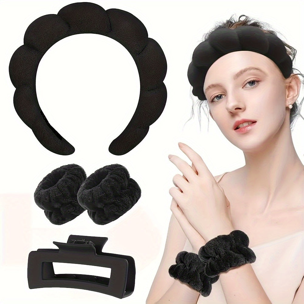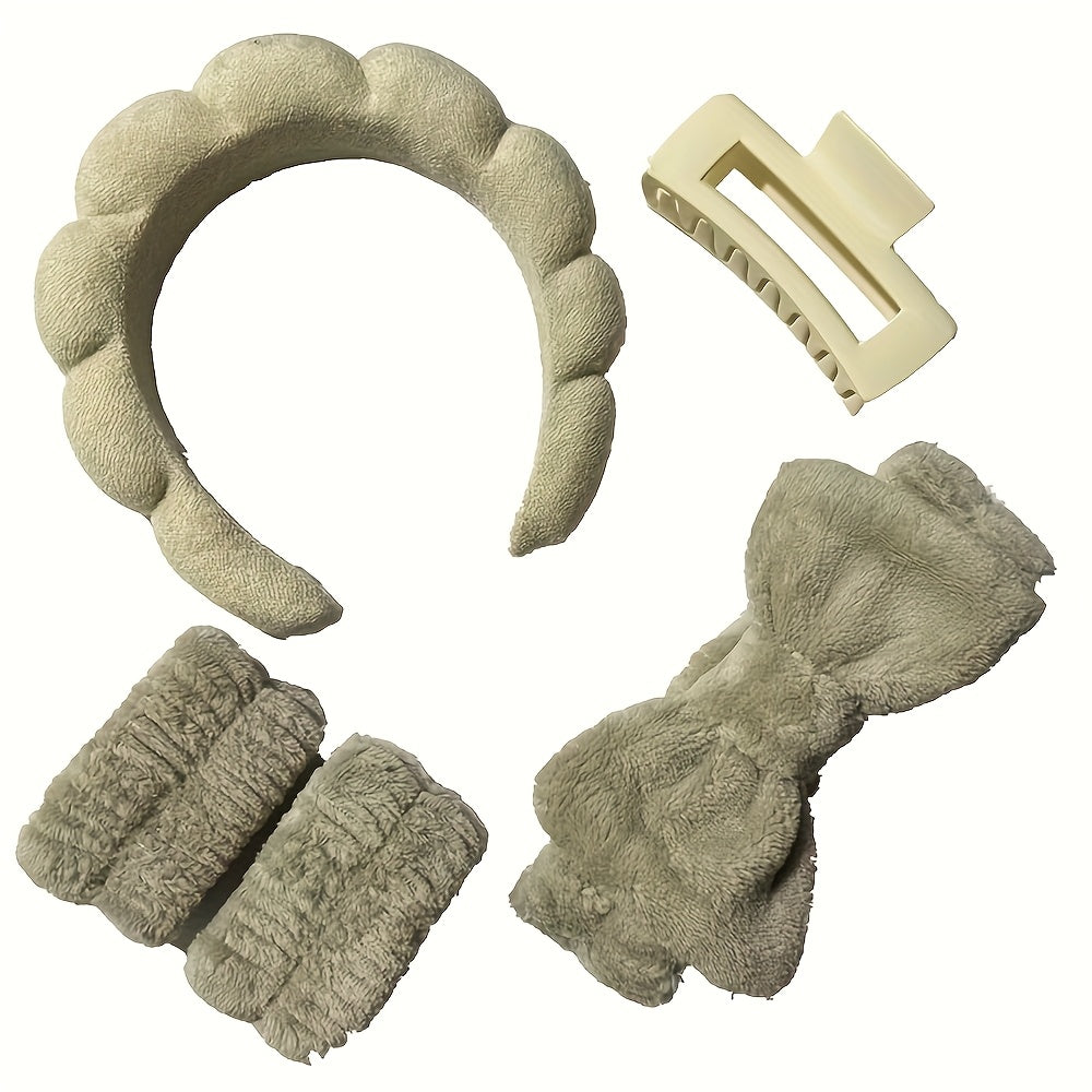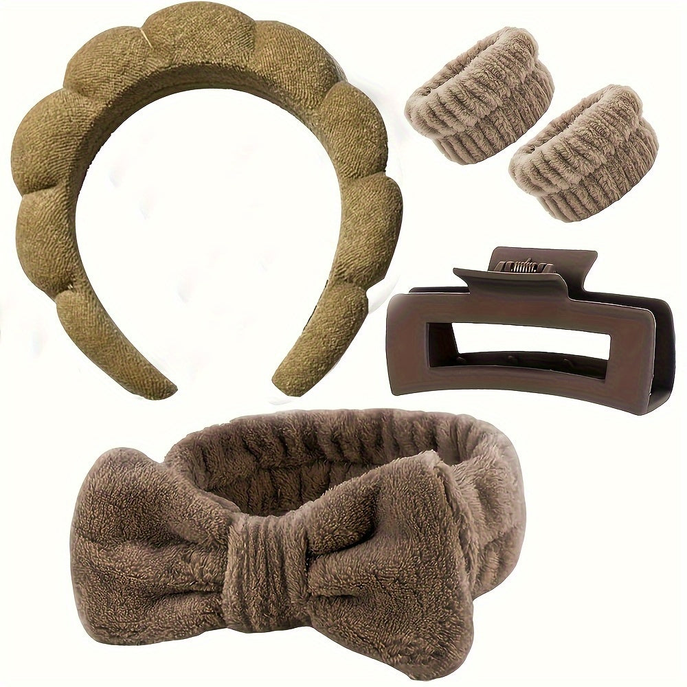 Kombinera komfort och funktionalitet med detta set om 5 mjuka håraccessoarer. Setet innehåller hårband och hårsnoddar tillverkade av rayon med en mjuk textur som känns bekväm och sitter stadigt utan att klämma. Tack vare den halkfria designen håller de sig perfekt på plats under smink, hudvård eller dagliga aktiviteter.