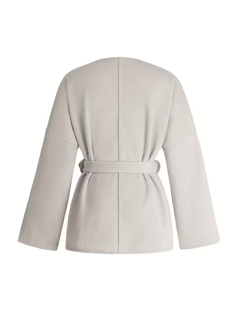 Håll dig stilfull och bekväm under de kallare dagarna med denna eleganta dam vinterkappa. Den klassiska designen med en strukturerad krage och midjebälte ger en feminin och sofistikerad look. Tack vare det högkvalitativa materialet erbjuder kappan både värme och komfort – perfekt för höst och vinter.