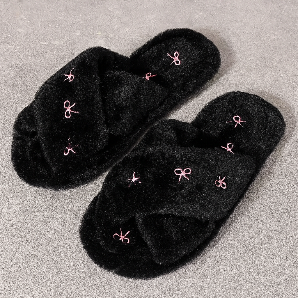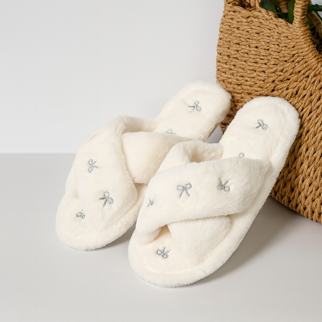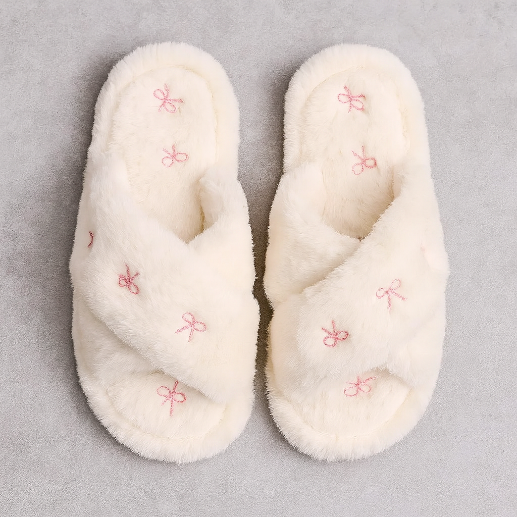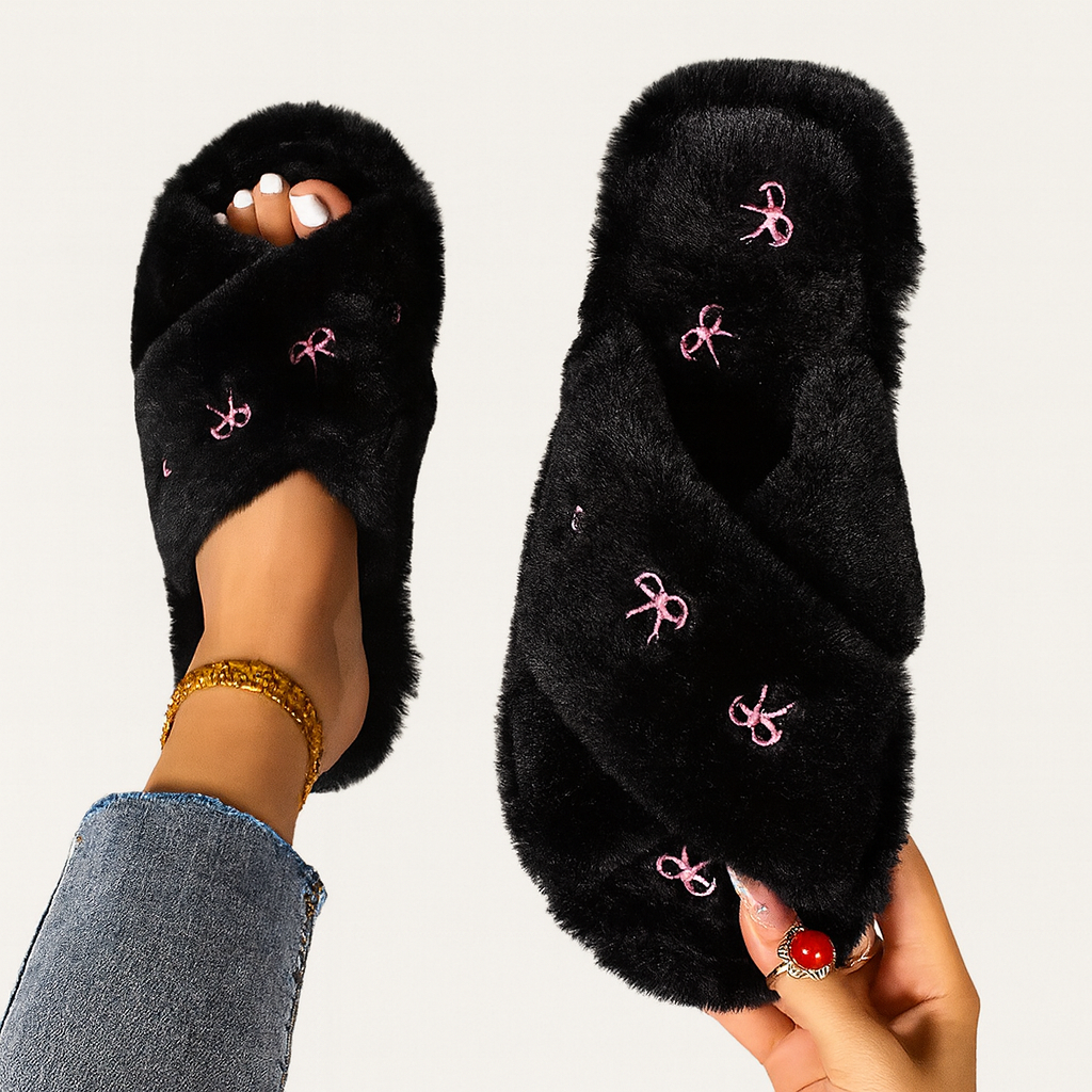 Mjuka plyschtofflor med dekorativa rosetter