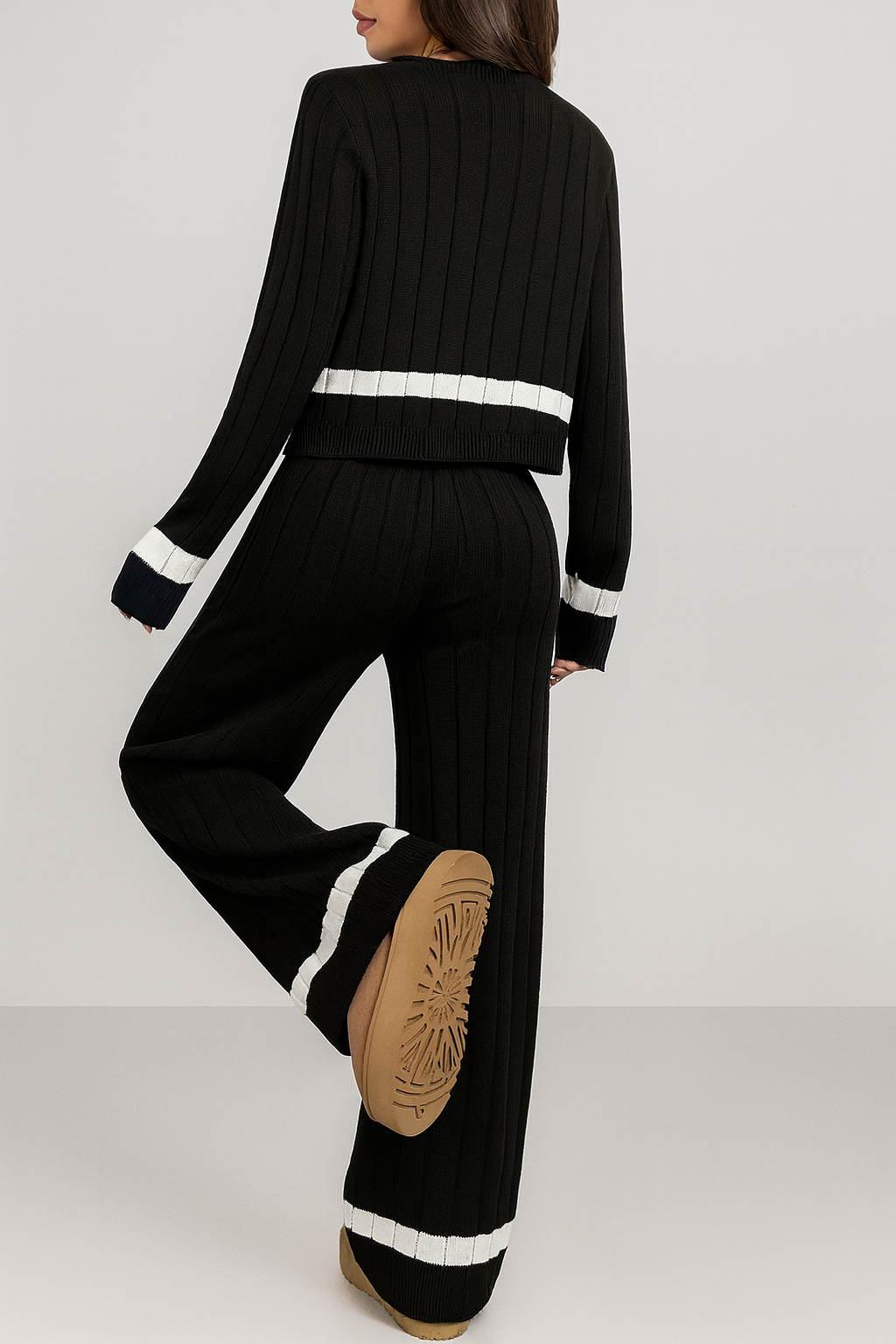 Uppgradera din vardagsstil med detta mångsidiga tvådelade set som kombinerar komfort och trendig design. Setet består av en långärmad kofta med klassisk knappstängning och matchande byxor i en avslappnad passform – perfekt för både hemmamys och vardagsaktiviteter.